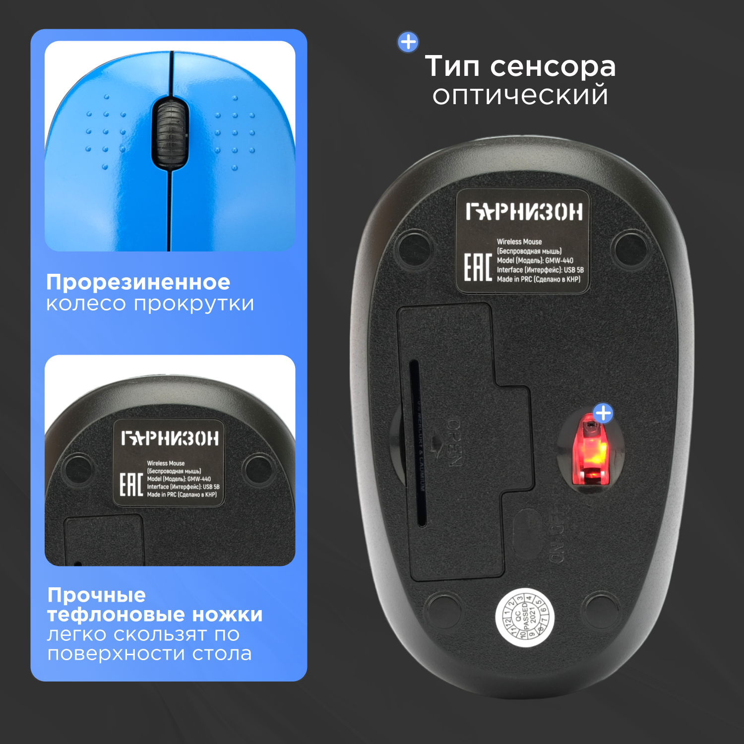 Мышь беспроводная Гарнизон GMW-440-2, синий, 1000 DPI, 2 кнопки+ колесо-кнопка
