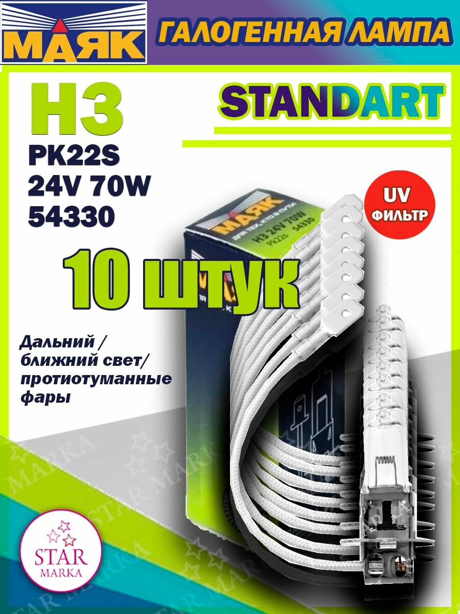 Лампа 24v H3 70w Pk22s Маяк Standart 1 Шт. Картон 54330 Маяк арт. 54330