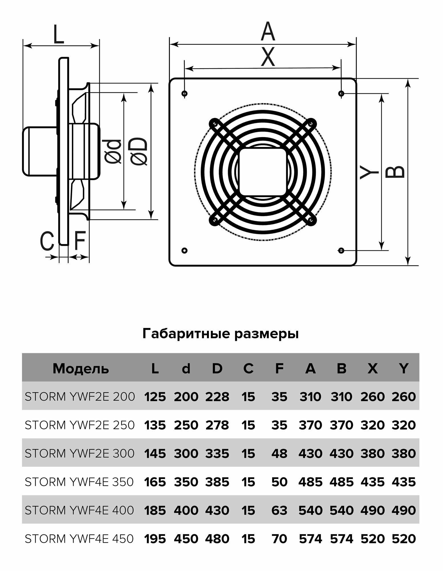 Вентилятор осевой ERA Storm YWF2E 200 с квадратным фланцем d200