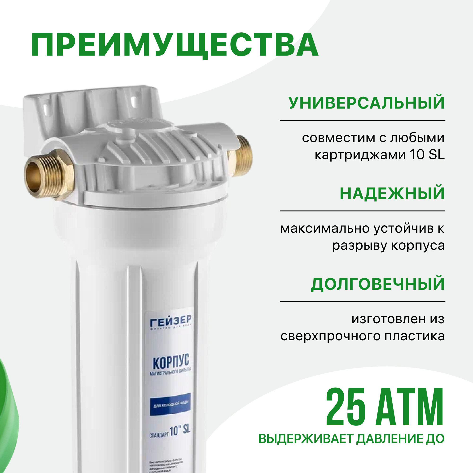 Корпус Гейзер 10SL 3/4", корпус магистрального фильтра, для холодной воды