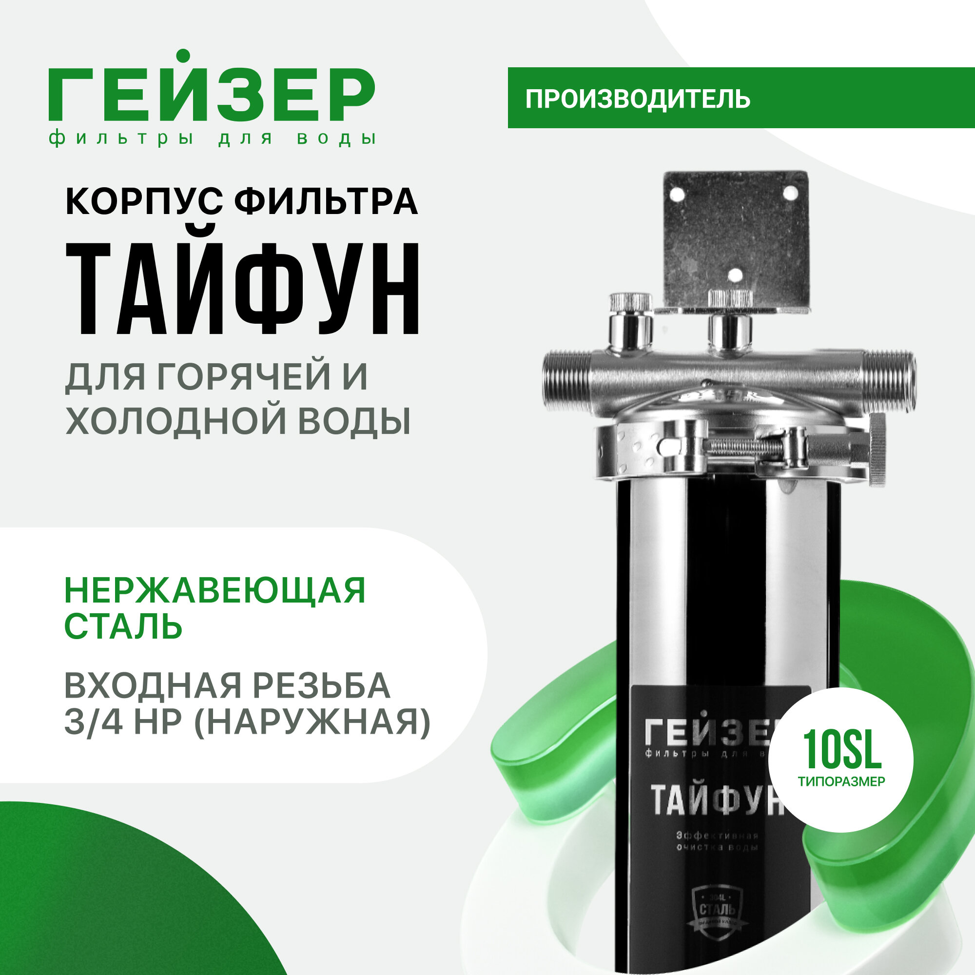 Фильтр магистральный Гейзер Тайфун 10 SL 3/4 корпус (50668) для холодной и горячей воды