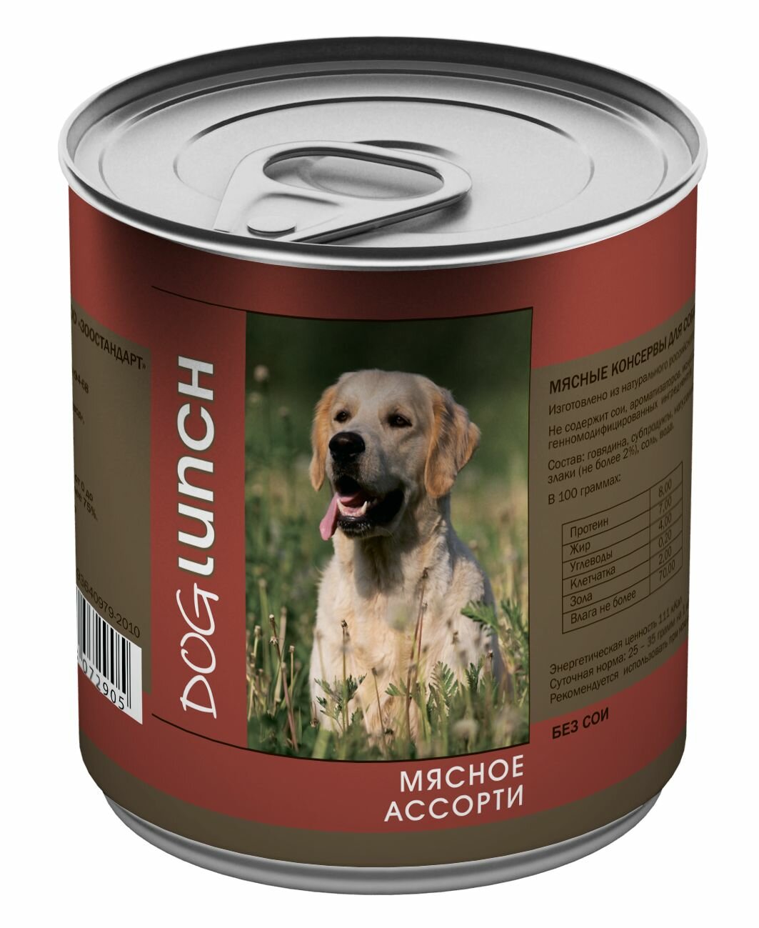 Dog Lunch консервы для собак Мясное ассорти в желе 750г х12шт