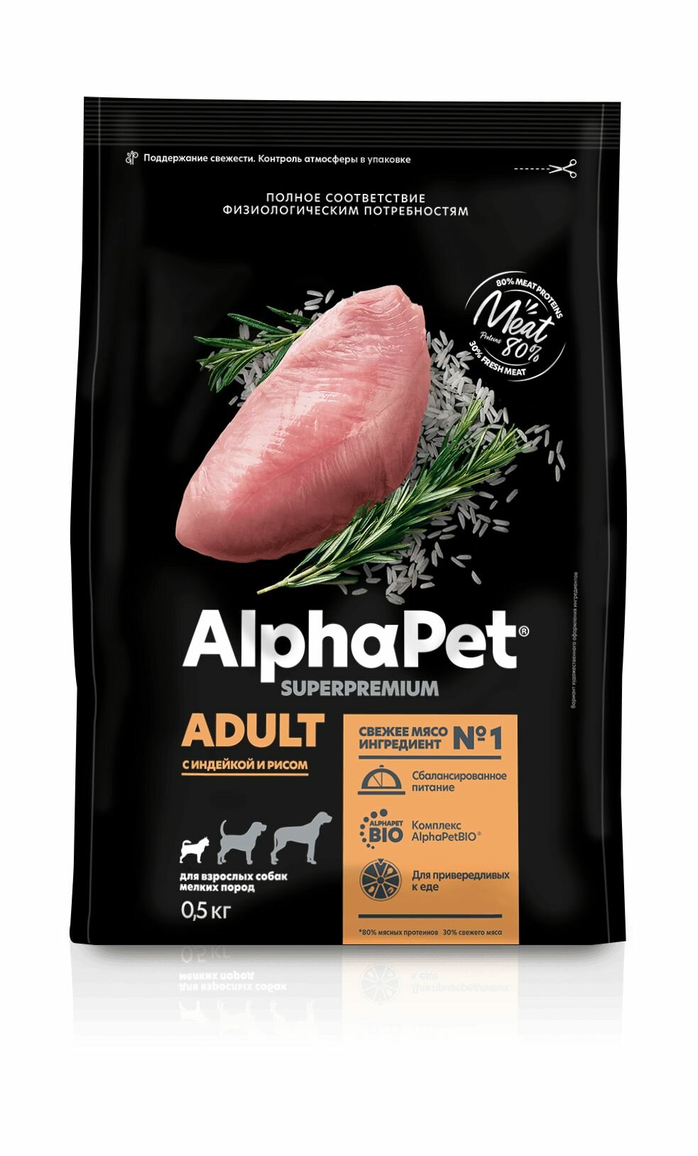 СохранитьСухой корм для собак мелких пород AlphaPet Superpremium с индейкой и рисом, 3кг интересное:
