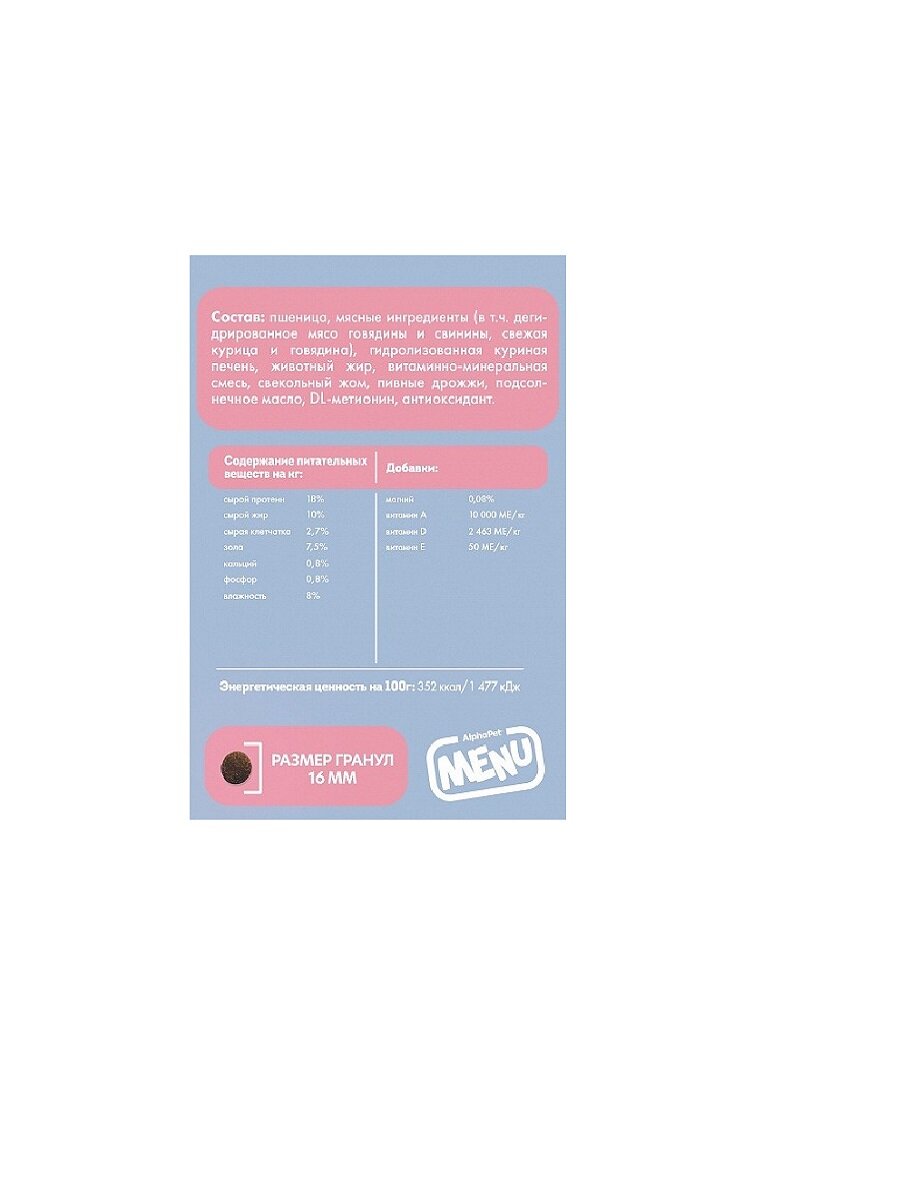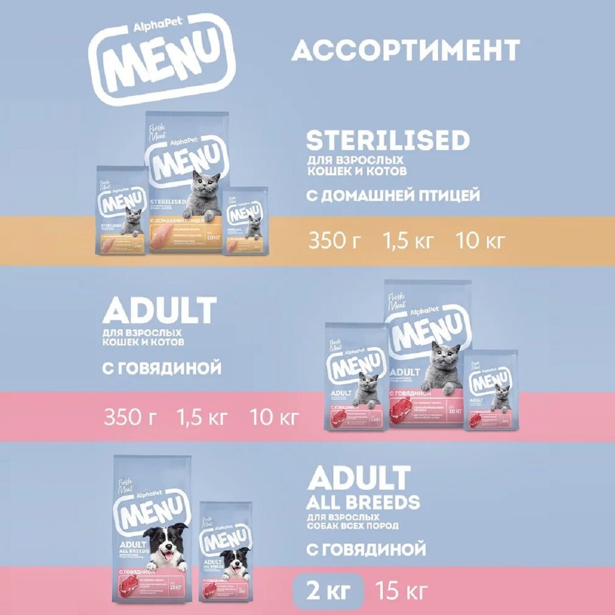 Альфа Пет 52758 MENU сух. двзрослых собак всех пород с Говядиной 15кг, 108350 (2 шт)