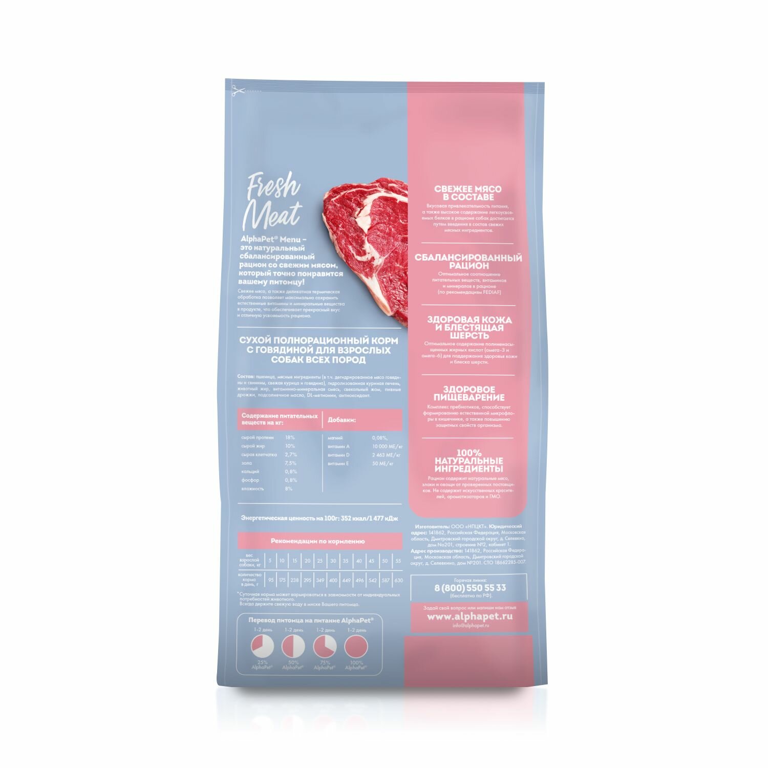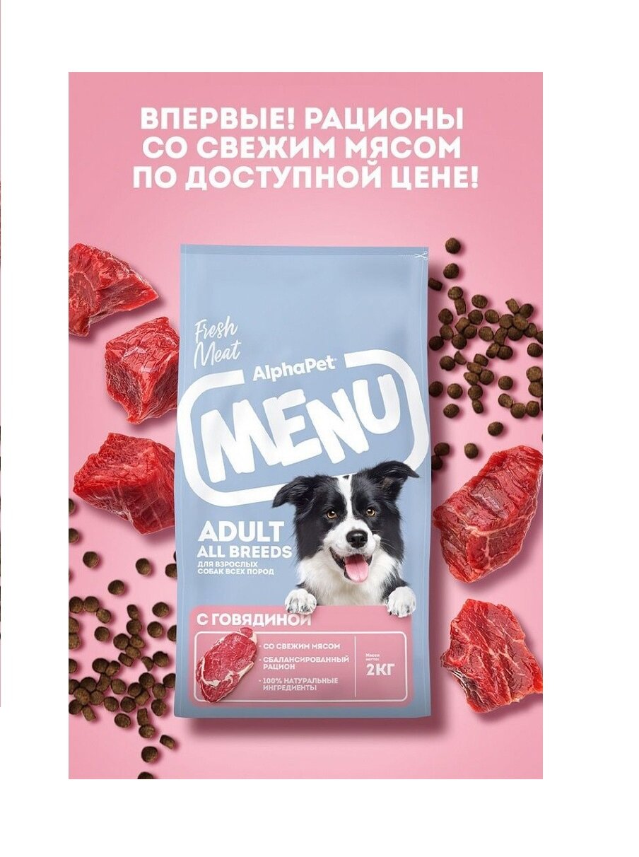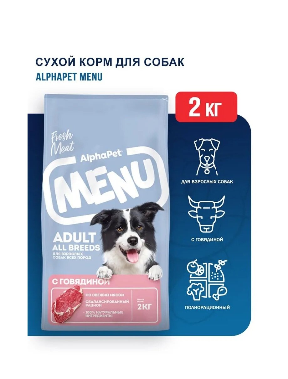 Купить Сухой корм для взрослых собак AlphaPet Menu с говядиной, 2кг