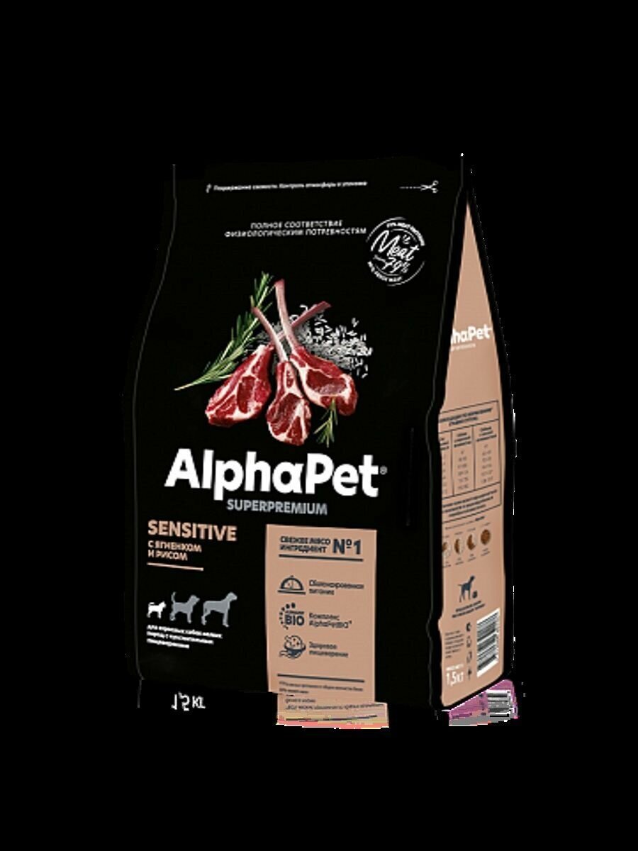 AlphaPet Сухой полнорационный корм Superpremium с ягненком и рисом, для взрослых собак мелких пород с чувствительным пищеварением, 1,5 кг