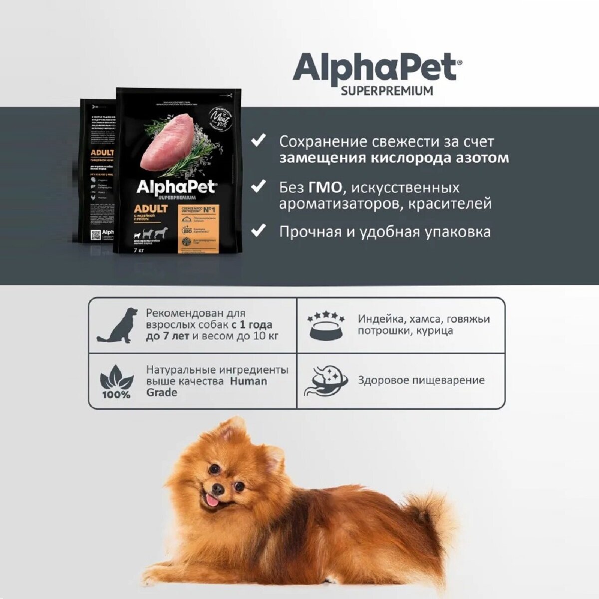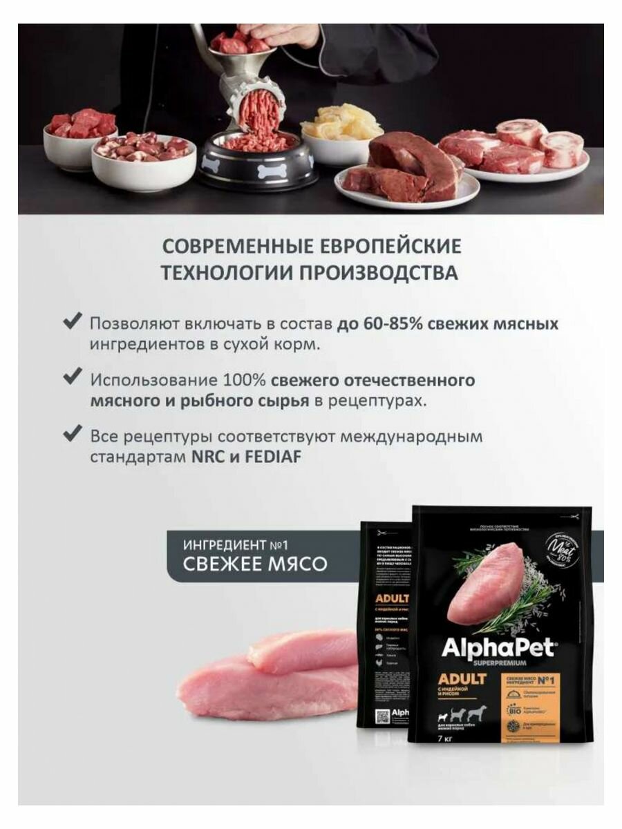 СохранитьСухой корм для собак мелких пород AlphaPet Superpremium с индейкой и рисом, 7кг интересное: