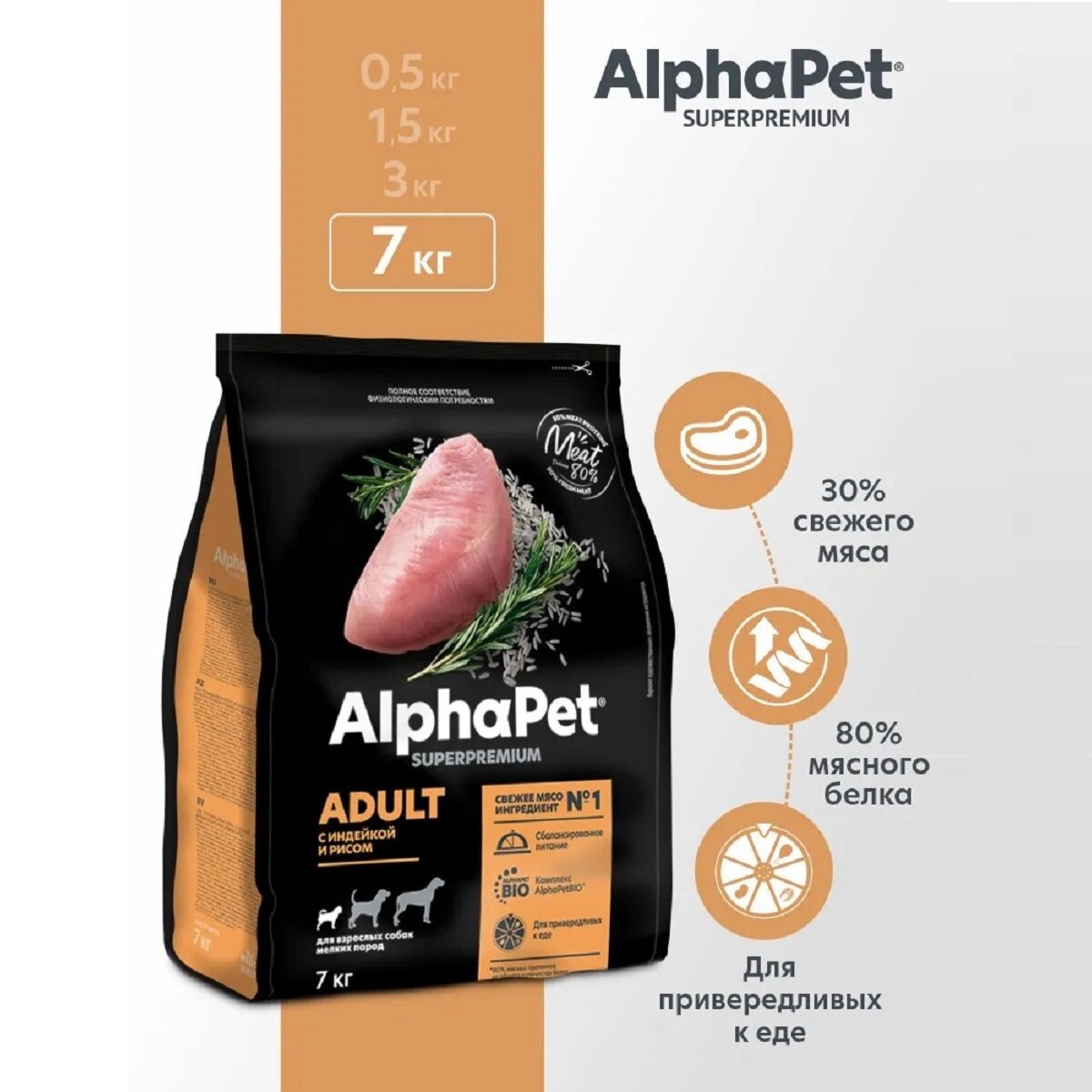 Купить Сухой корм для собак мелких пород AlphaPet Superpremium с индейкой и рисом, 7кг