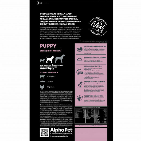 СохранитьСухой корм для щенков до 6 месяцев, беременных и кормящих собак средних пород ALPHAPET Superpremium Puppy с говядиной и рисом 2кг интересное:
