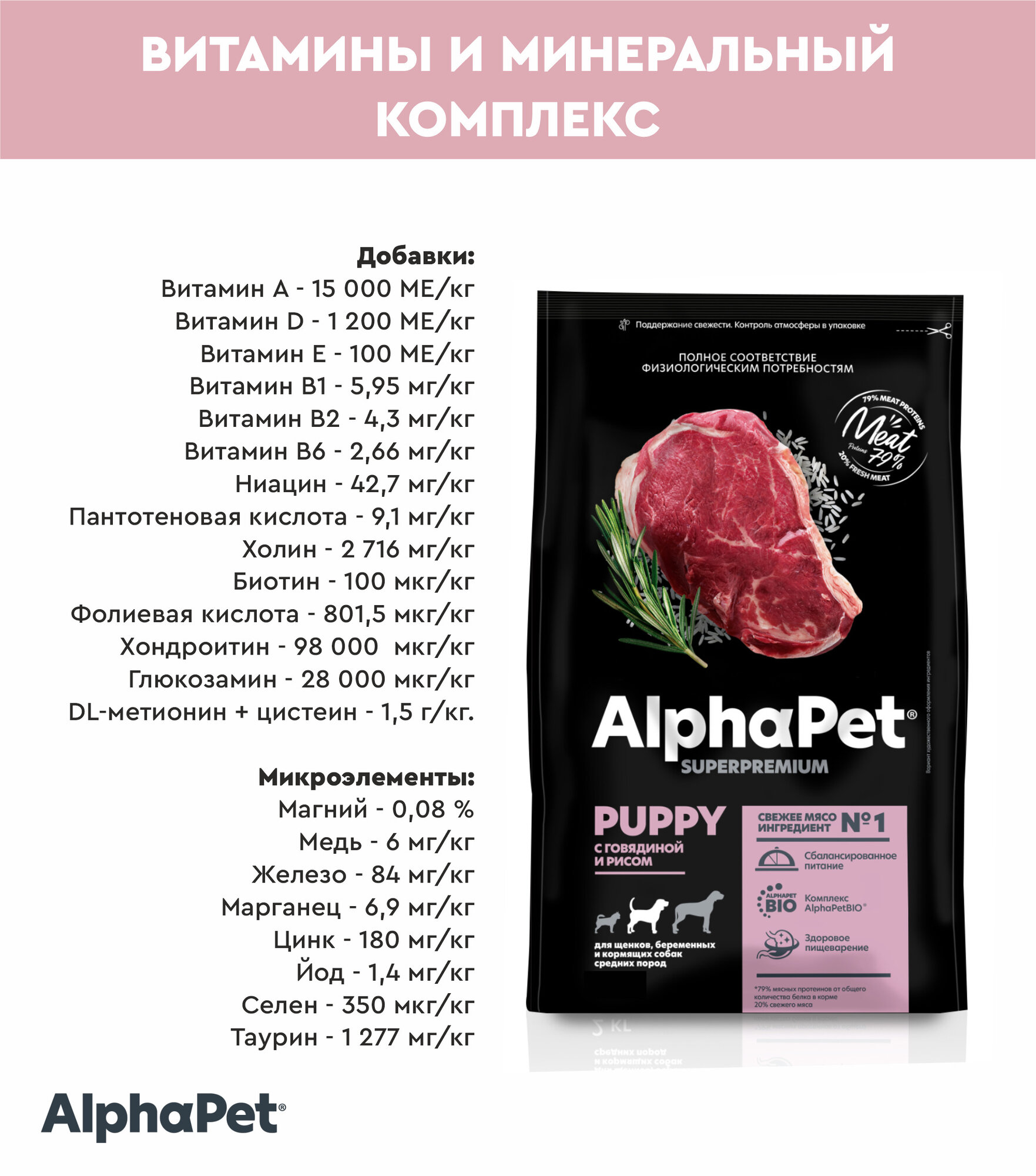 Купить Сухой корм для щенков до 6 месяцев, беременных и кормящих собак средних пород ALPHAPET Superpremium Puppy с говядиной и рисом 2кг