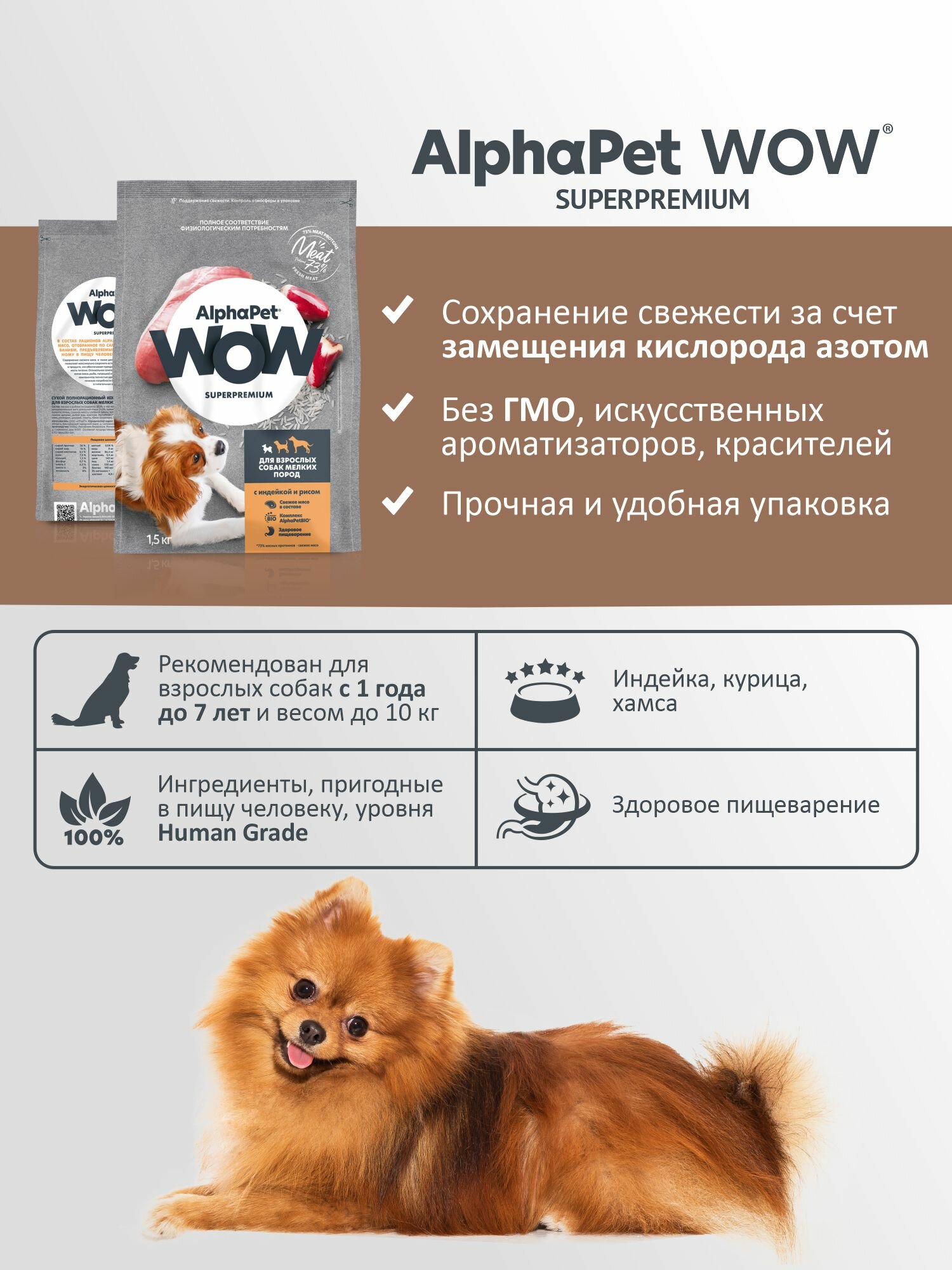 Купить AlphaPet WOW Superpremium сухой полнорационный корм для взрослых собак мелких пород с индейкой и рисом - 1,5 кг