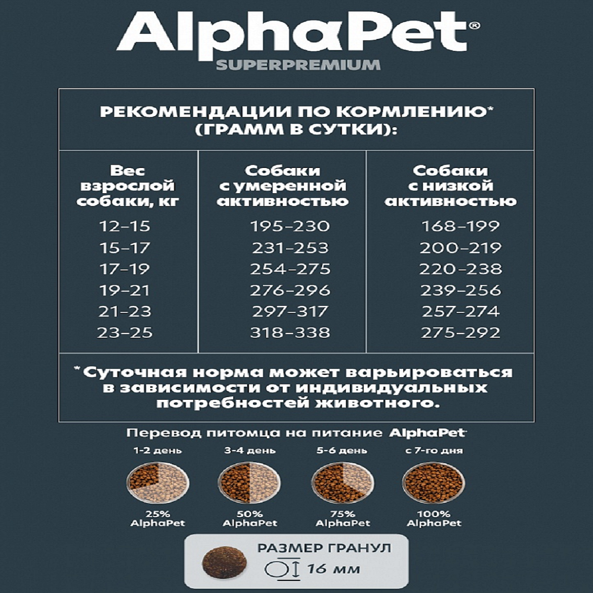 СохранитьСухой корм AlphaPet Superpremium для взрослых собак средних пород с говядиной и потрошками 7 кг интересное: