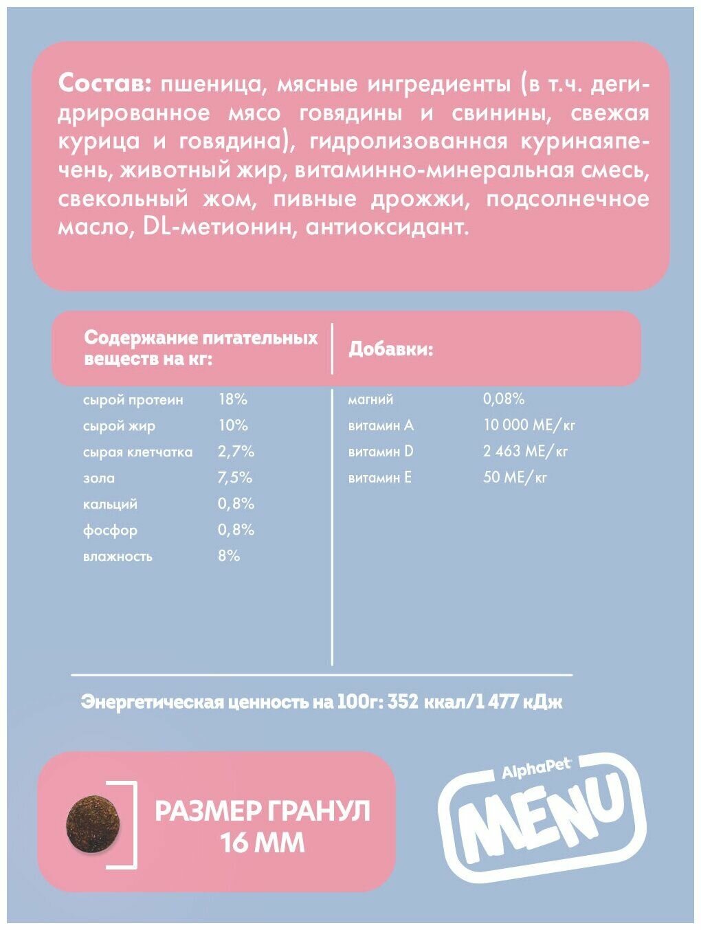 Альфа Пет 52758 MENU сух. двзрослых собак всех пород с Говядиной 15кг, 108350 (2 шт)