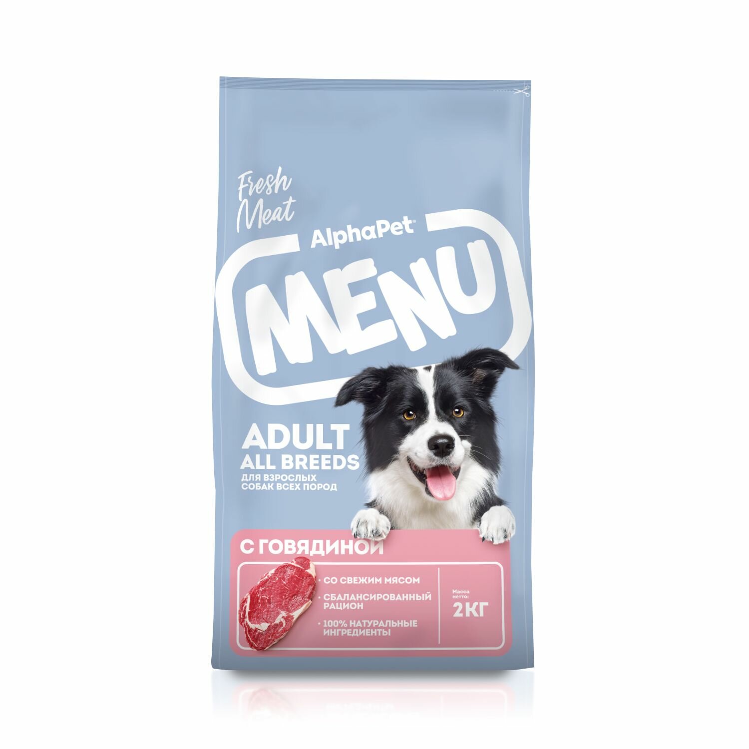 Купить ALPHAPET MENU ADULT ALL BREEDS для взрослых собак всех пород с говядиной (2 + 2 кг)
