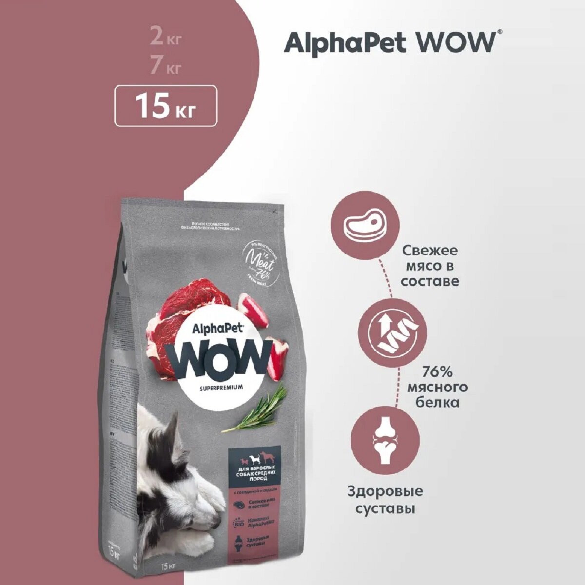 ALPHAPET WOW сухой для взрослых собак средних пород с Говядиной и сердцем 7кг