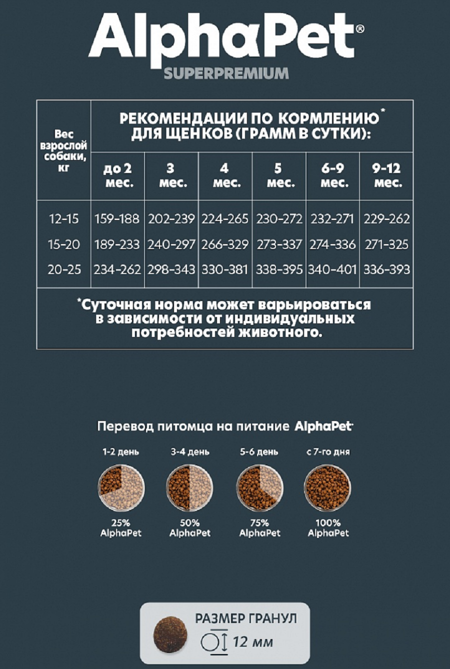 ALPHAPET SUPERPREMIUM 12 кг сухой корм для щенков до 6 месяцев, беременных и кормящих собак крупных пород с говядиной и рубцом, 82979 (1 шт)