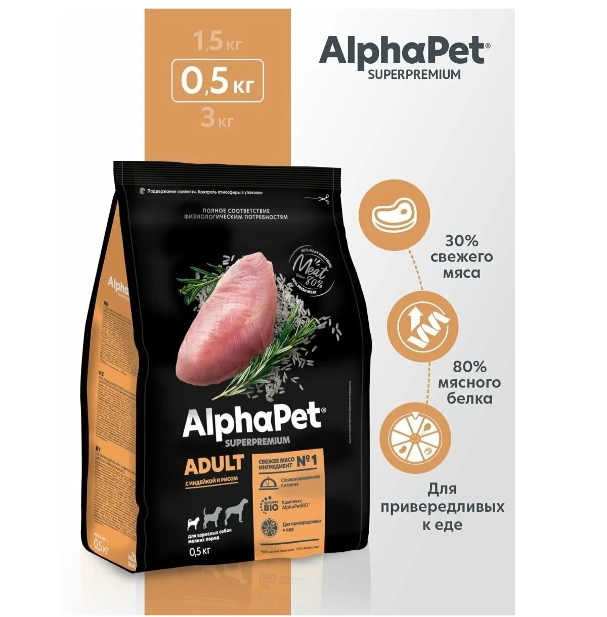 Купить AlphaPet Superpremium (АльфаПет) 0,5кг с индейкой и рисом сухой корм для собак мелких пород (651102)