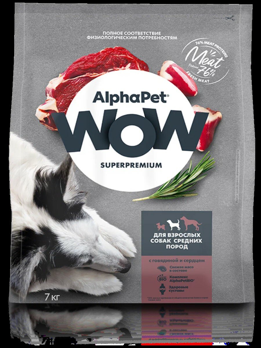 ALPHAPET WOW сухой для взрослых собак средних пород с Говядиной и сердцем 7кг