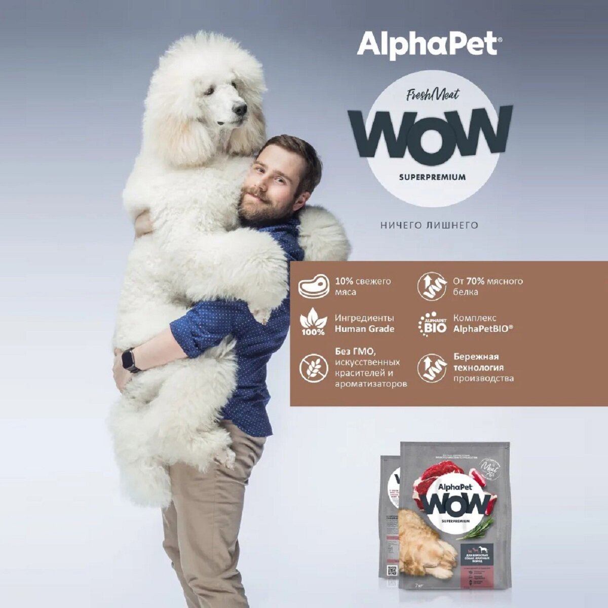 AlphaPet WOW корм для собак средних пород с чувствительным пищеварением, с ягненком и бурым рисом 15кг