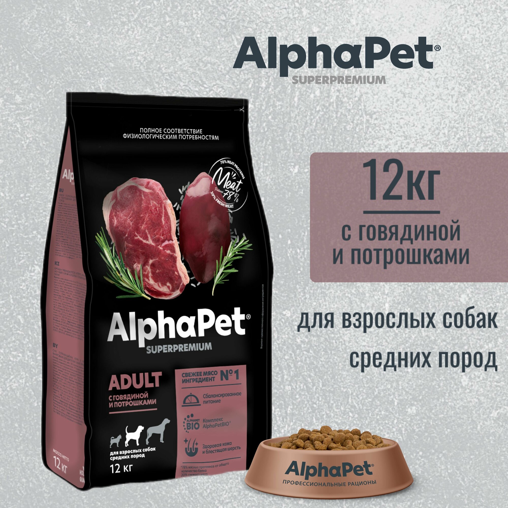 Купить Сухой корм AlphaPet Superpremium для взрослых собак средних пород, с говядиной и потрошками, 12 кг