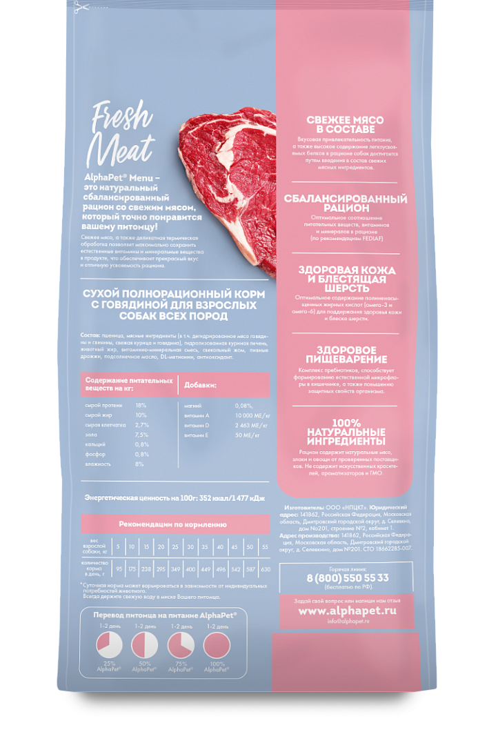 AlphaPet Корм для собак говядина 15 кг