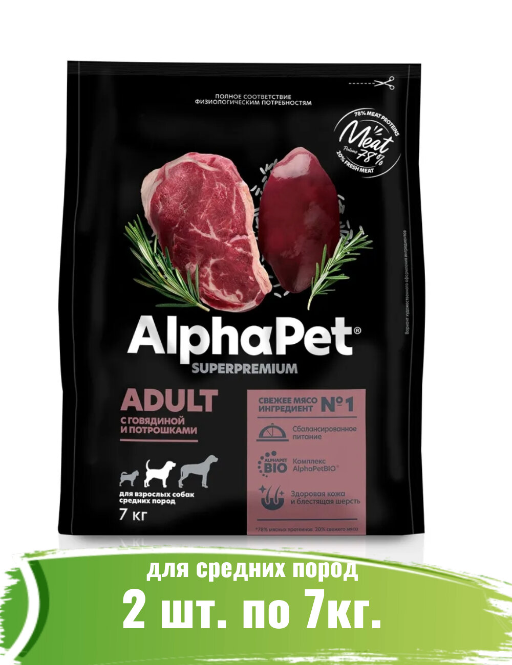 Купить AlphaPet Superpremium сухой корм для собак средних пород с говядиной и потрошками 2уп по 7кг