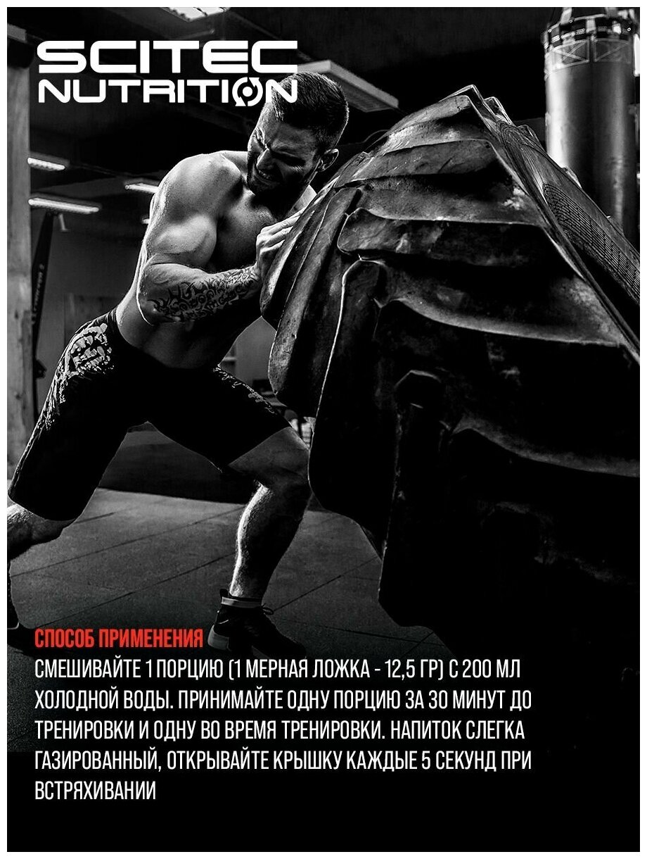 | Основные ингредиенты | BCAA / аргинин / бета-аланин / витамины и минералы / кофеин / креатин / таурин / экстракт гуараны |