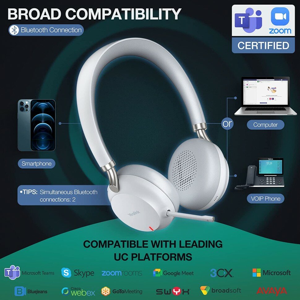 Гарнитура Yealink BH72 Lite UC Light Gray USB интересное:
