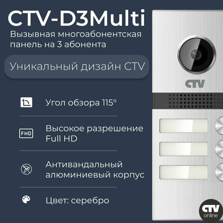 Вызывная (звонковая) панель на 3 квартиры CTV D3Multi серебро