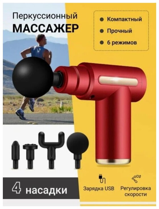 Массажер/массажер для тела/массажер пистолет /массажер электрический/массажер перкуссионный/массажер ударный, цвет красный