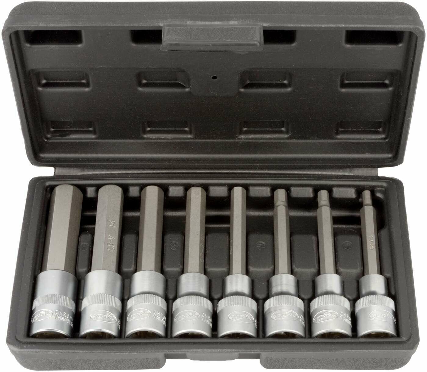 Набор головок со вставкой Hex 8 пр. 1/2" 5-17 мм L=100 мм в кейсе АвтоДело