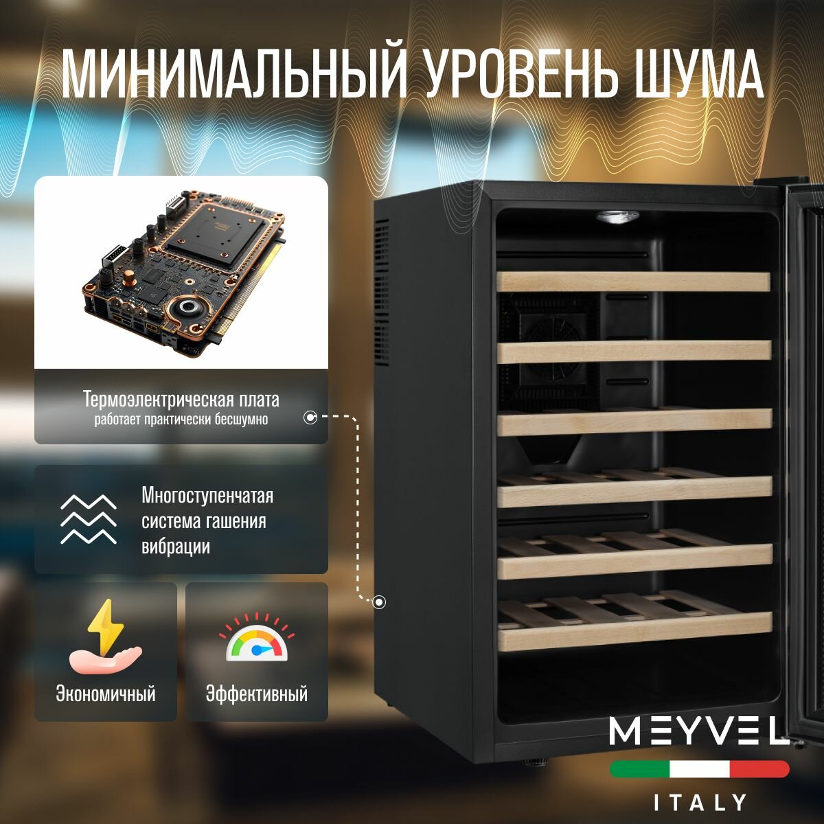Винный холодильный шкаф MEYVEL MV28-BF1 (EASY) термоэлектрический (отдельностоящий холодильник для вина на 28 бутылок) интересное: