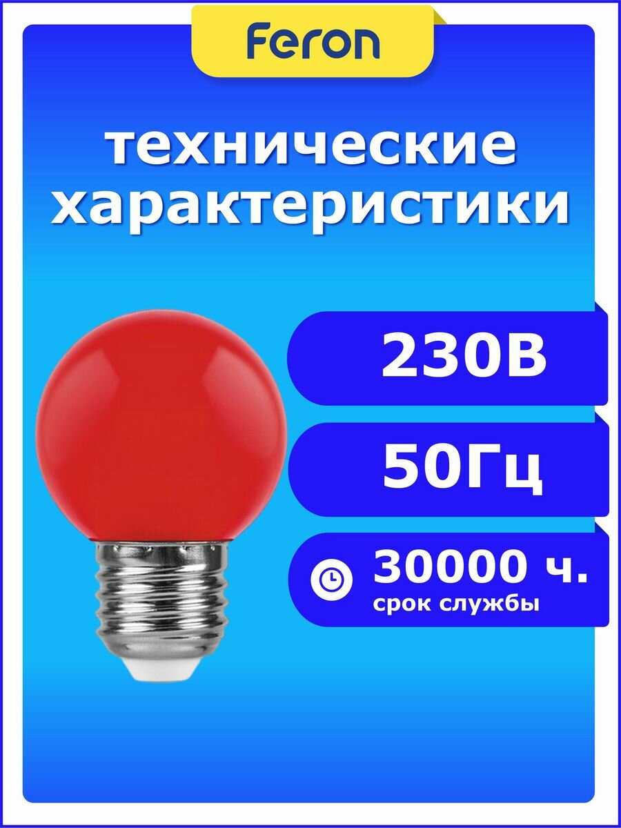 Купить Лампа светодиодная Feron LB-37 Шарик E27 1W Красный 25116