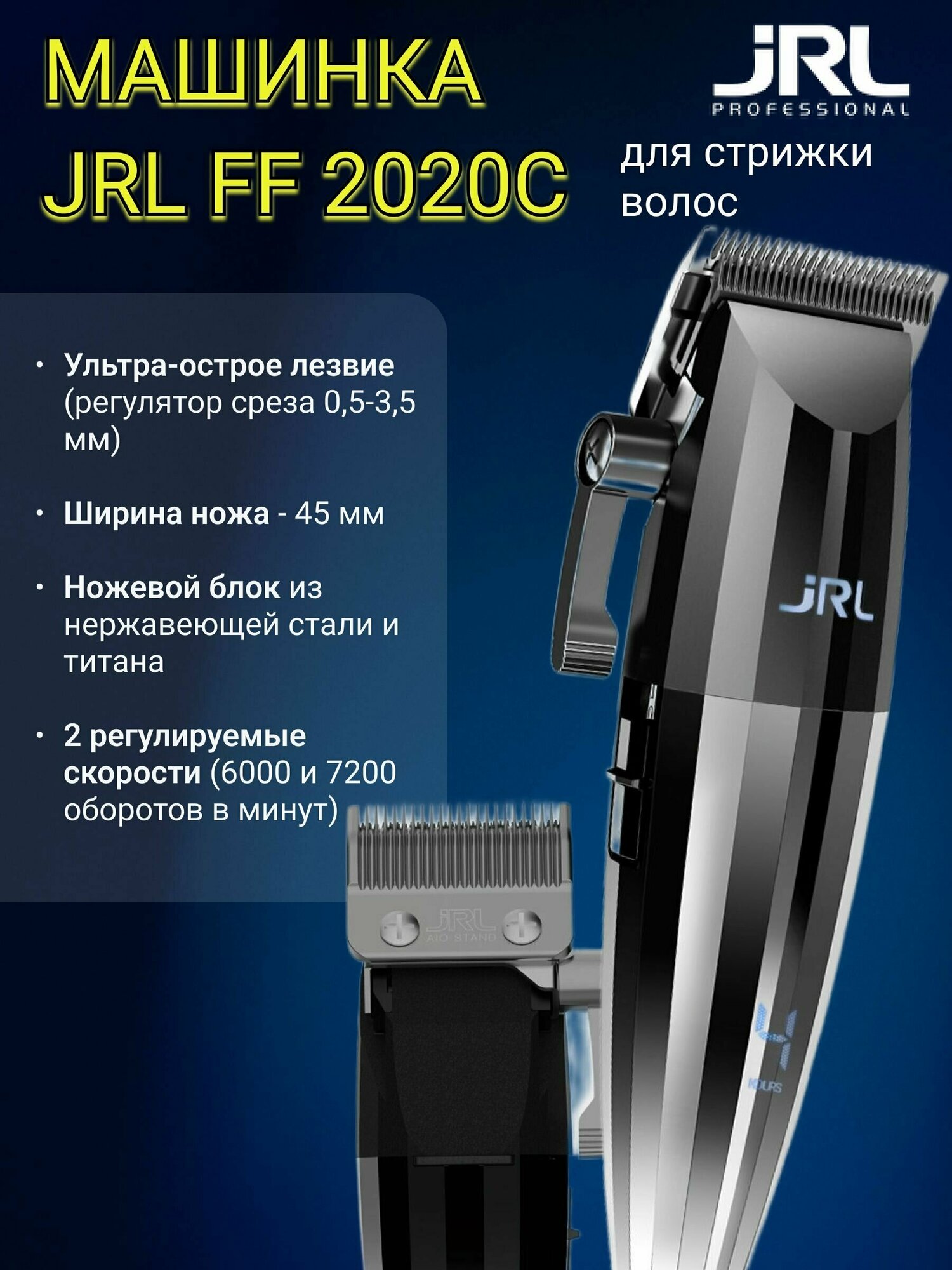 Машинка для стрижки волос JRL FF 2020C, аккум/сеть, регулир.нож 45мм.