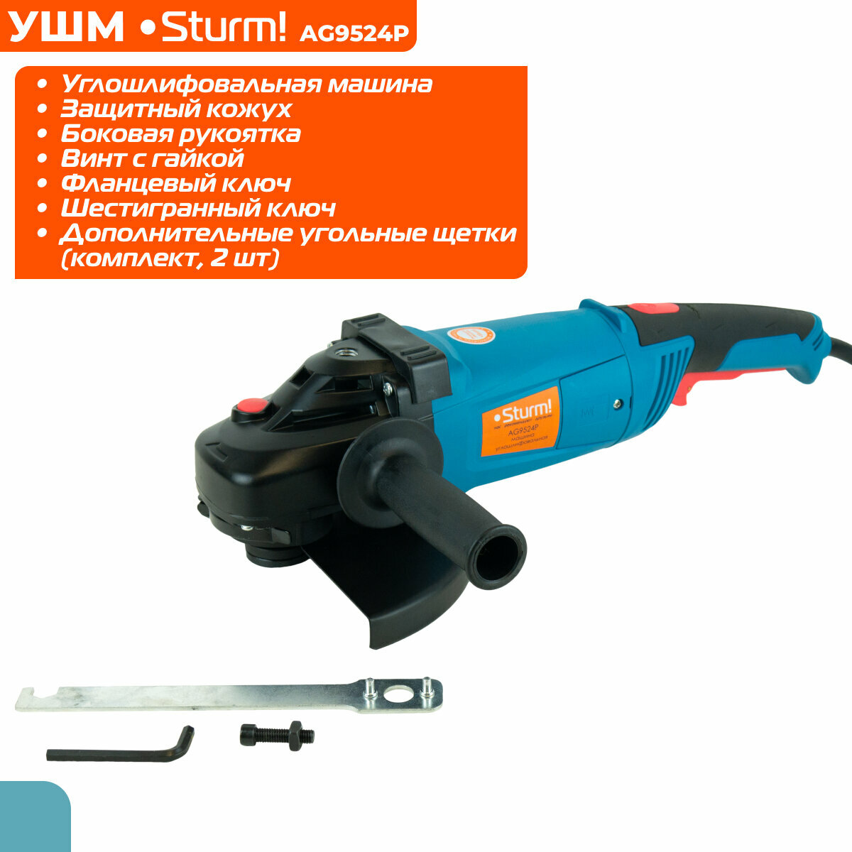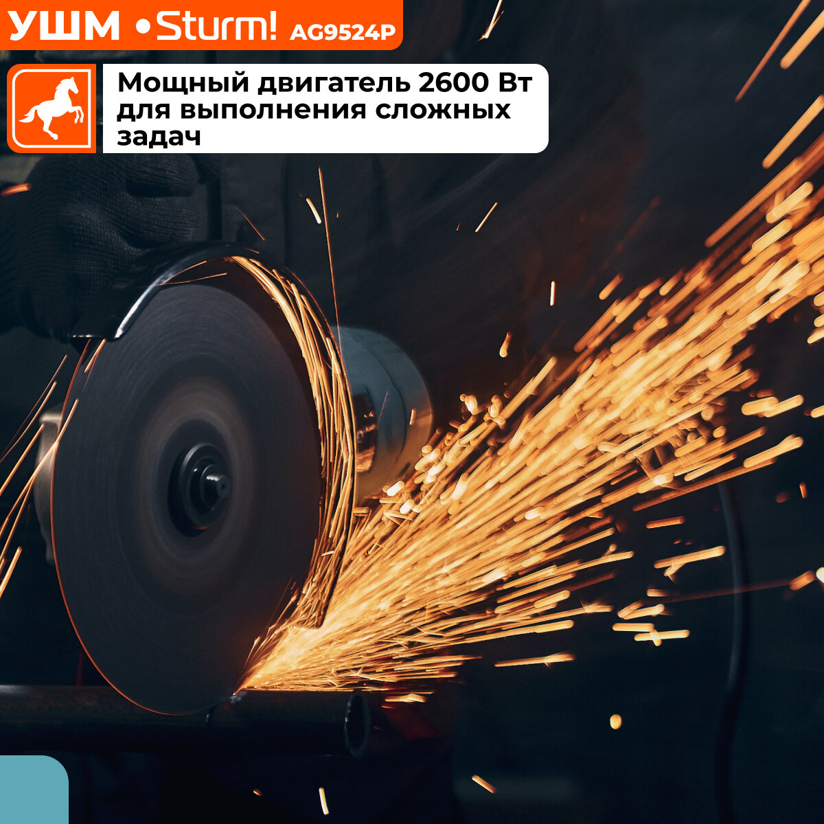 AG9524P Машина углошлифовальная "профи" 230мм, 2600Вт, удлин. пов. рукоять, антивибр., Sturm! Sturm!