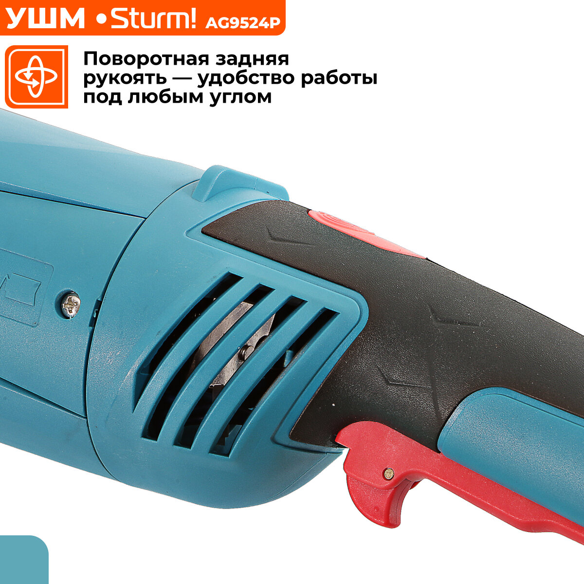 AG9524P Машина углошлифовальная "профи" Sturm, 230 мм, 2600 Вт, удлин. пов. рукоять, антивибр.