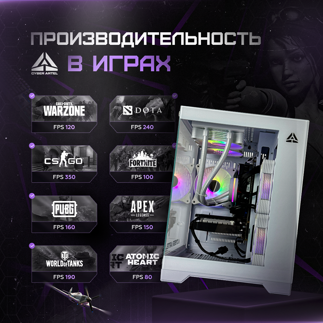 CYBER ARTEL Мощный системный блок для игрового компьютера ARTEL PC (Intel Core i5-13400F, RAM 16 ГБ, SSD 1000 ГБ, NVIDIA GeForce RTX 4060 (8 Гб) с Windows 10 Pro
