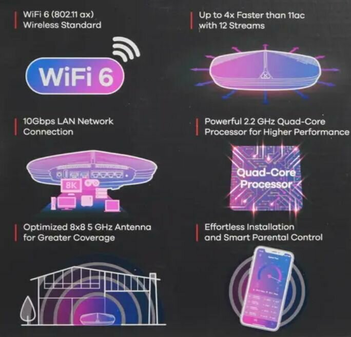 | Плюсы: | Самое первое и важное это поддержка WiFi 6, что дало мне возможность получения на каждое устройство своего канала.