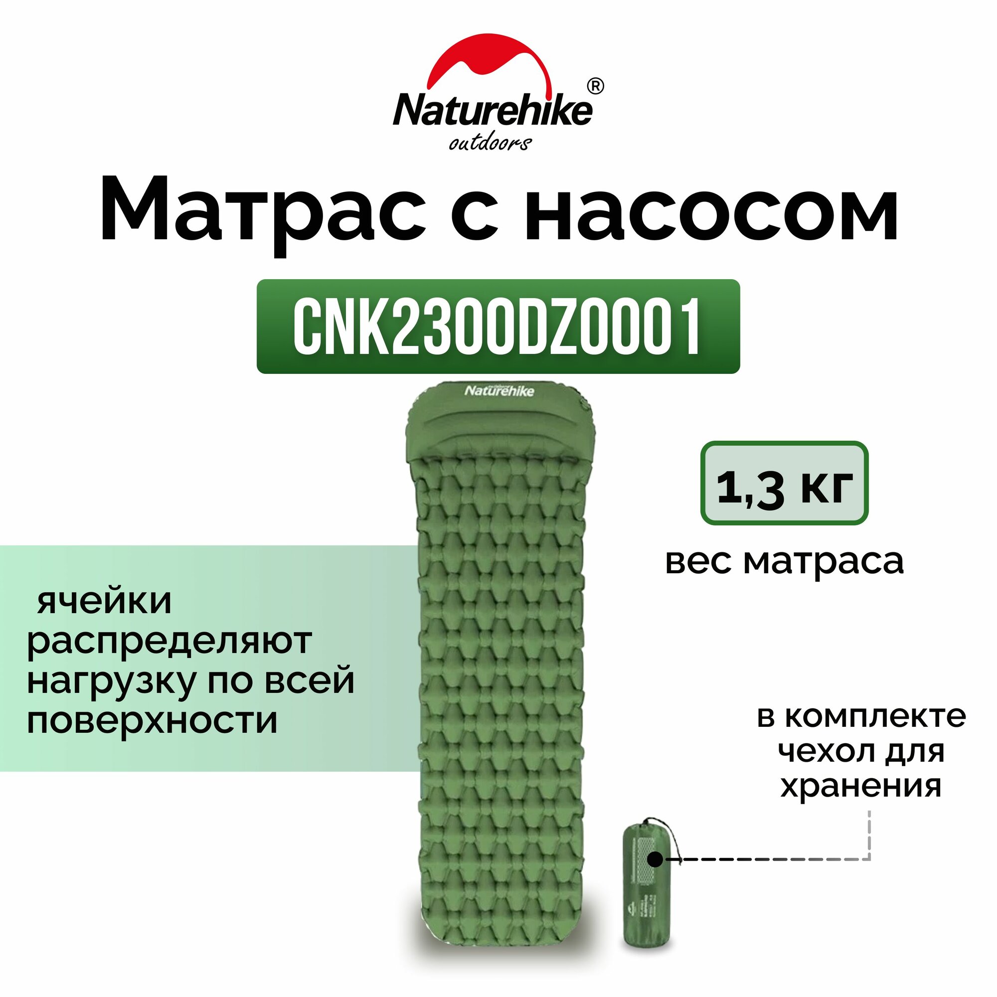 Туристический надувной матрас с насосом Naturehike CNK2300DZ0001 FC-12 зелёный