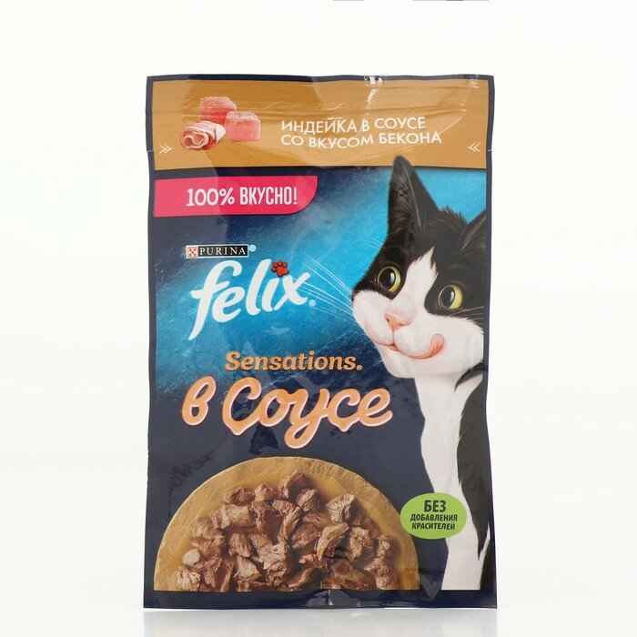 Felix Sensations 75 г пауч влажный корм в удивительном соусе для кошек, индейка с беконом 52 шт