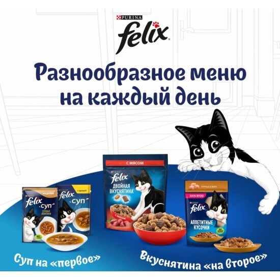 Влажный корм Felix Суп для взрослых кошек, с треской пауч, 48г х 108 шт