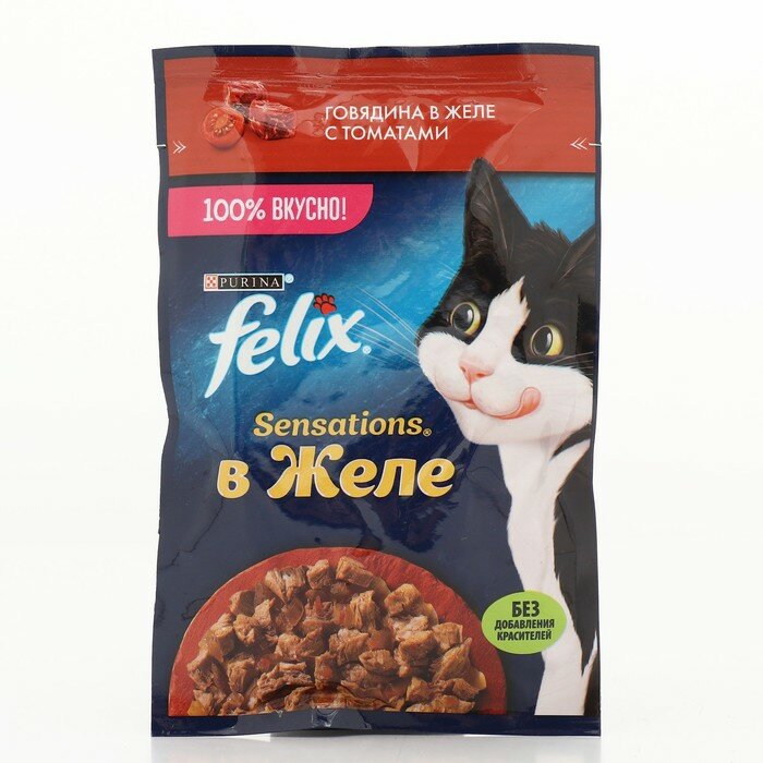 Felix Sensations 75 г пауч влажный корм для кошек, с говядиной в желе с томатами 52 шт