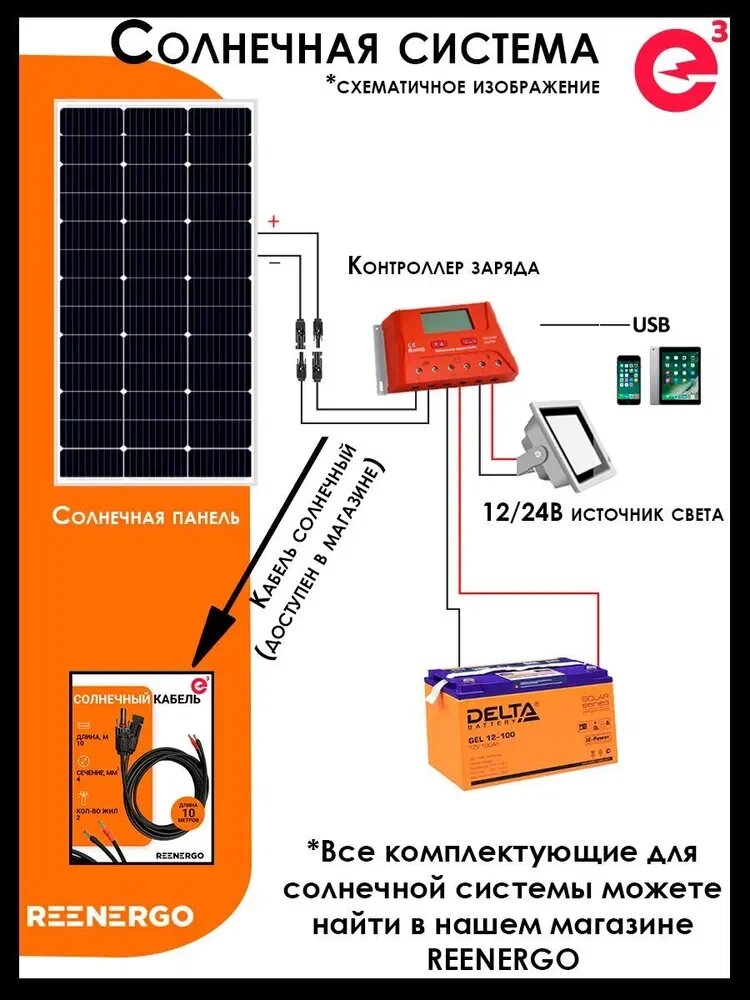 | Тип комплектующих | кабель / коннектор / контроллер заряда / солнечная панель |