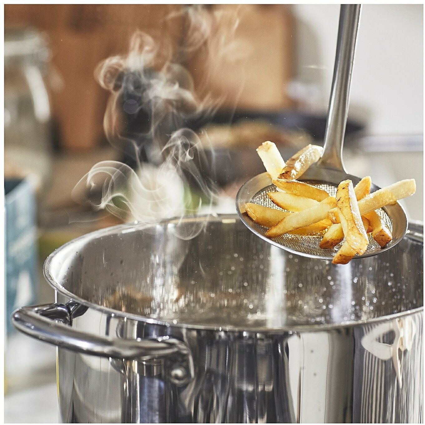 Прекрасная кастрюля, тяжелая, с многослойным дном, прекрасно распределяет тепло, мне был важен размер - хорошие пропорции, ну, и блестит, конечно, красиво. Отмывается легко.