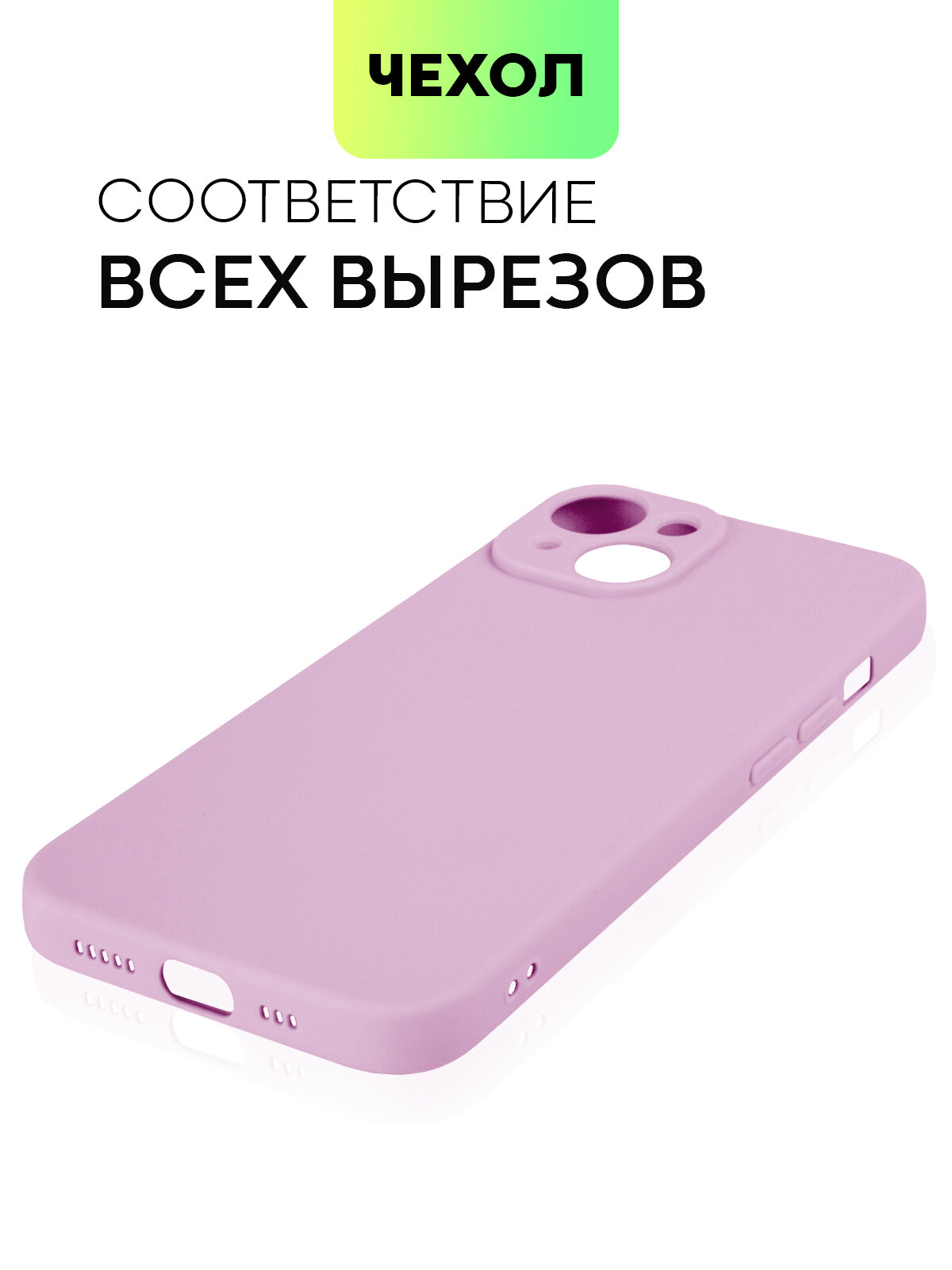 BROSCORP/Силиконовый чехол-накладка для Apple iPhone 14 (Эпл Айфон 14) тонкая, с матовым покрытием и защитой вокруг модуля камер, светло-сиреневая