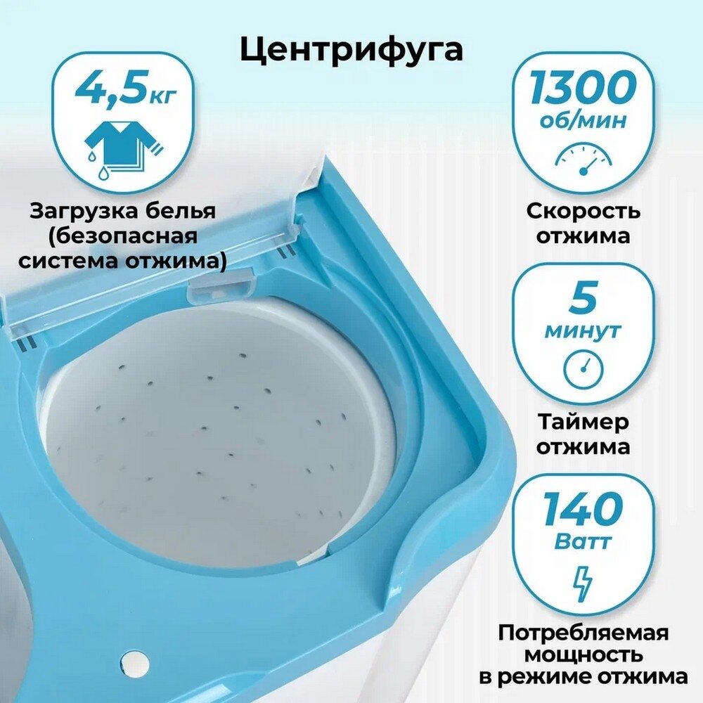 | Дополнительная информация | таймер стирки 15 минут; таймер отжима 5 минут |