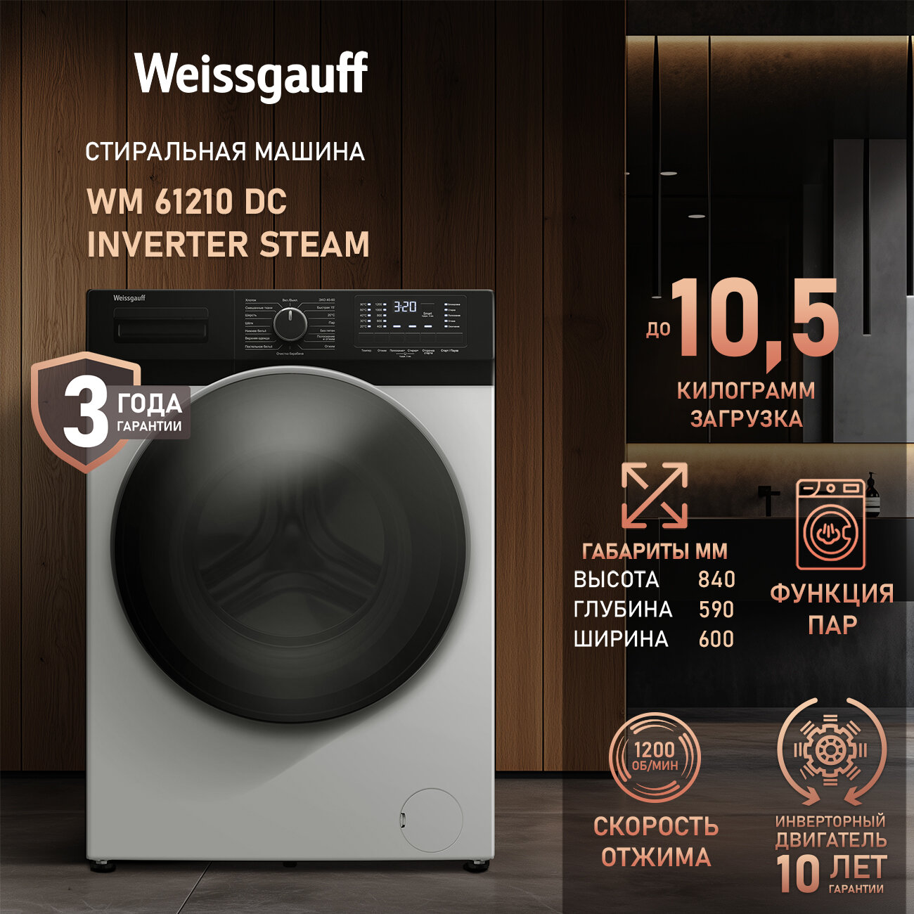 Купить Стиральная машина с инвертором и паром Weissgauff WM 61210 DC Inverter Steam, 10.5 кг загрузка