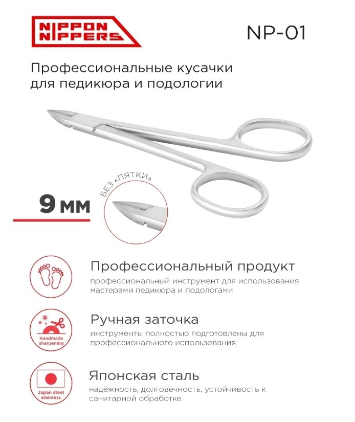 Nippon Nippers, Кусачки для педикюра "Глазки". Лезвие без пятки 9 мм. Матовые NP-01 интересное: