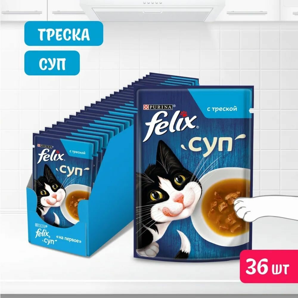 Купить Влажный корм для взрослых кошек Felix Суп с треской в соусе 48 г x 36 шт