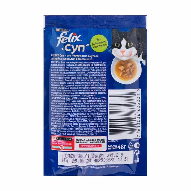 Купить Влажный корм для кошек "Felix Суп", Purina, курица, 48 г = 5 штук